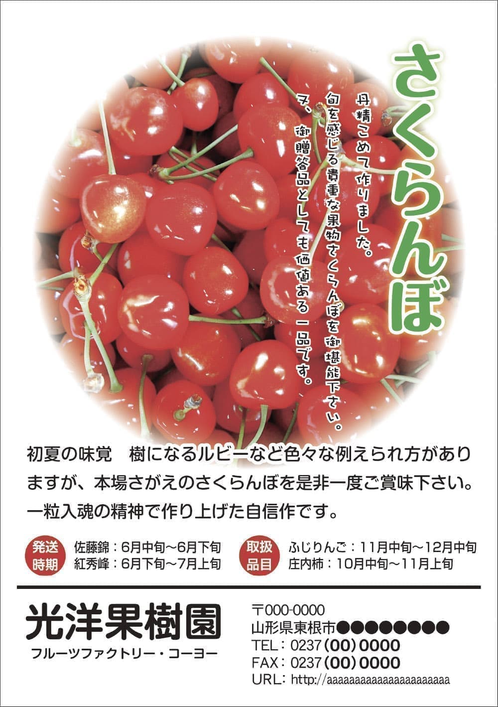 チラシサンプル 画像をクリックすると拡大して表示することができます。 販促・宅配・テイクアウトチラシ フリーイラストサンプル 単色用カラーサンプル ※印刷用の色なので、実際の色味とは異なります。 おすすめ書体見本 サンプル例文集 贈答用果樹リーフレット サンプル一覧へ 営業品目 年賀状デザイン サンプル集 チラシポスター パンフレットカタログ・冊子 名刺 はがき挨拶状 封筒 伝票 トップページへ 営業品目一覧 営業品目紹介 年賀状デザイン サンプル集